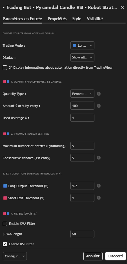 2 - Utiliser et régler la stratégie Pyramidal Candle RSI