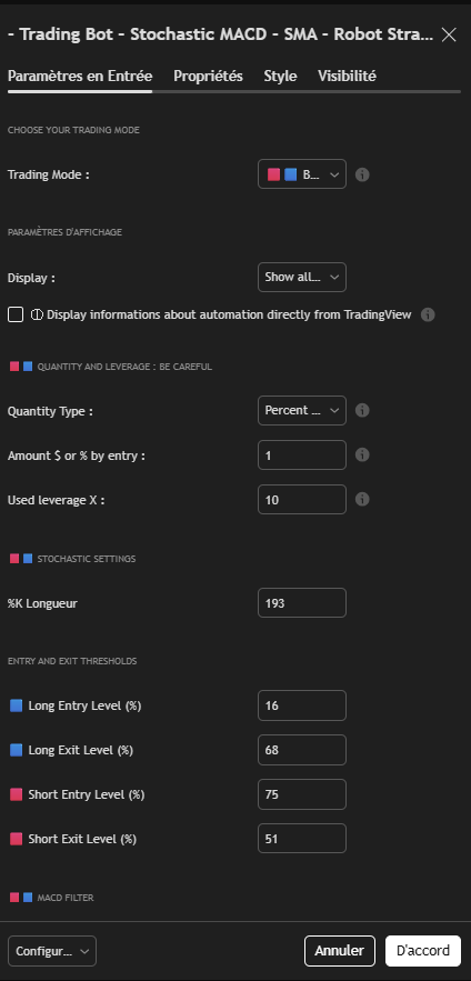 2 - Utiliser et régler la stratégie Stochastic MACD / SMA